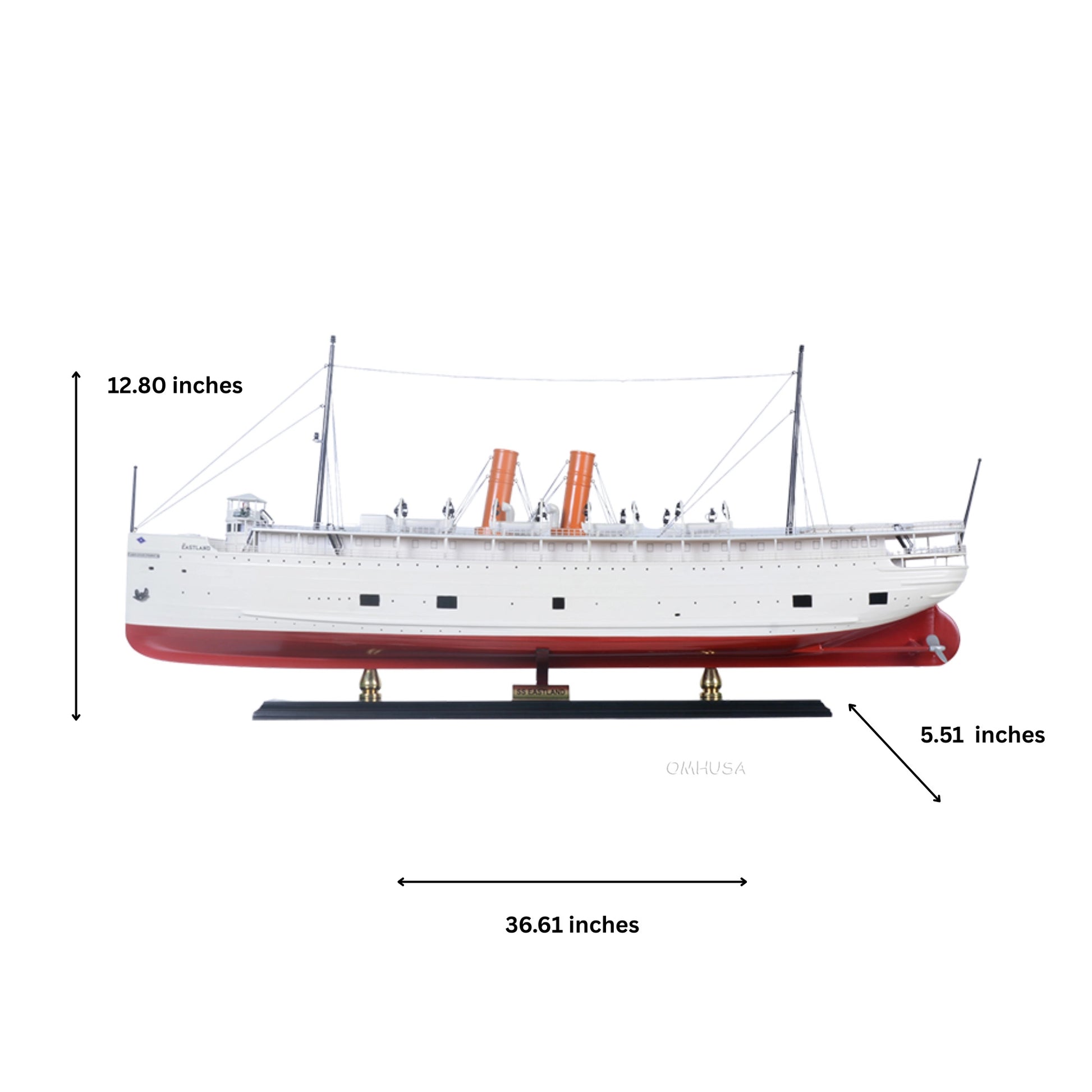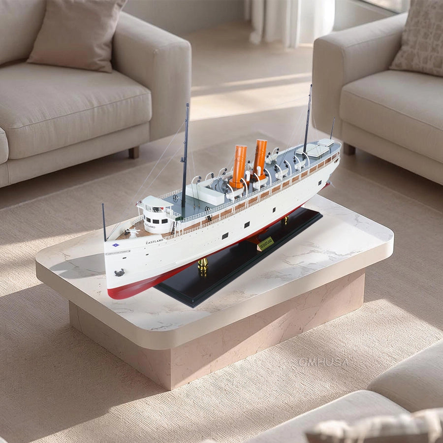 The SS Eastland was a passenger steamship launched in 1903, designed to transport Chicago residents across Lake Michigan for leisure cruises. Known for its size and luxurious accommodations, it was one of the largest passenger vessels operating on the Great Lakes. Tragically, the ship capsized in the Chicago River in 1915, claiming the lives of over 800 passengers and crew, marking one of the deadliest maritime disasters in U.S. history. This highly detailed model is a museum-quality replica, meticulously handcrafted from high-grade wood with plank-on-frame construction. Master craftsmen carefully assemble each hull, deck, and superstructure by hand, ensuring precision and historical accuracy. The model is fully scaled to reflect the original ship, from its twin funnels and detailed deck fittings to the lifeboats and railings.