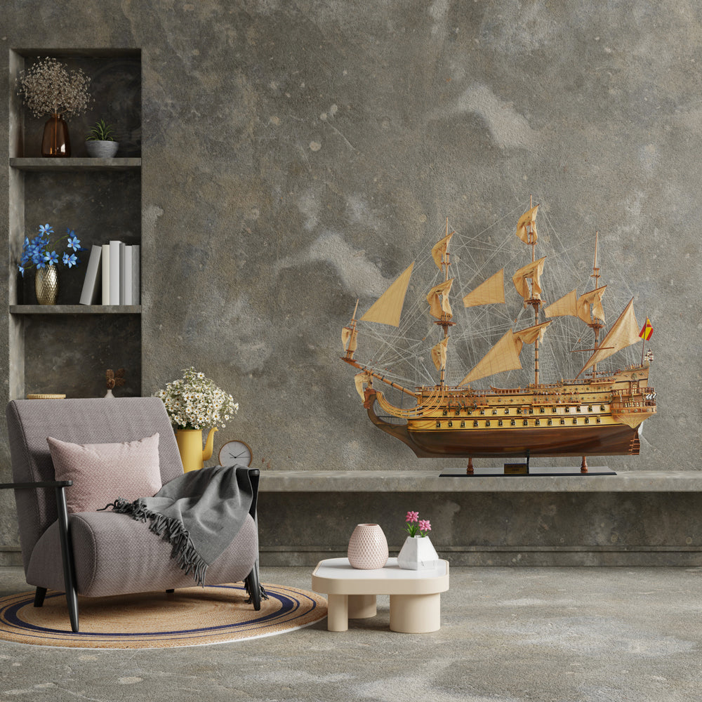 Flashback to 1637, this vintage and classic San Felipe XXL ship model reminds you of when she was launched and became the largest warship of its time and the first to carry 100 guns. Bringing the history vibe home with our historical gunboat, longboat and battle ship model collections.